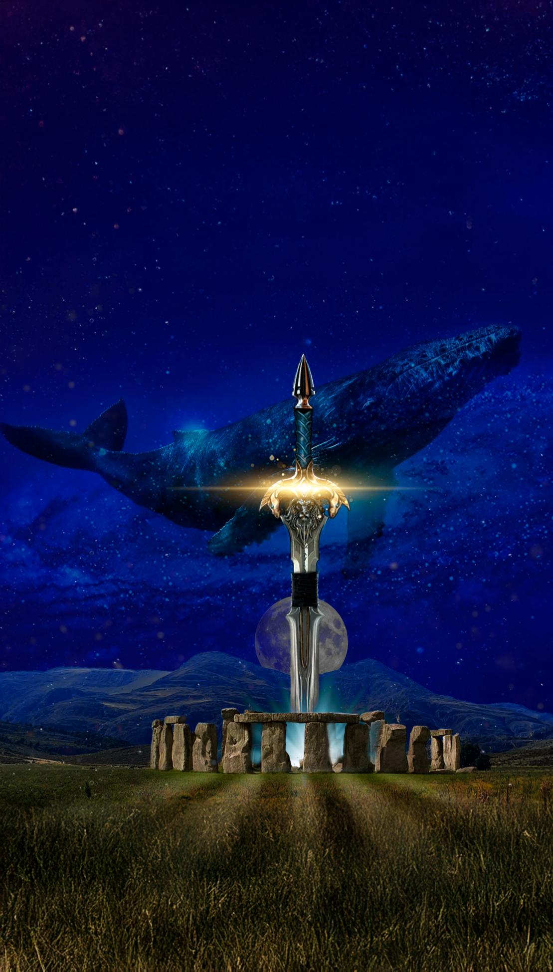 Esta obra representa el mapa de la autoridad recobrada. Bajo el lente de la estructuración de la verdad interna, la imagen se convierte en un motor de empoderamiento radical. Lo primero que impacta es la espada situada en el centro exacto de un círculo de piedras ancestrales. En la arquitectura de tu alma, esto representa la formación del Logos: la palabra interna que tiene el poder de cortar la ilusión y ordenar el caos. El templo de piedra (tipo Stonehenge) no es una reliquia del pasado, es el símbolo de tus cimientos, de esos valores inamovibles sobre los que construyes tu realidad. La espada no está allí para la guerra, sino como un eje de justicia interna que te permite discernir lo que es tuyo de lo que te fue impuesto.